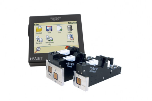 Jednotka HSAJET® Premium MiniTouch MTHP4 dokáže řídit tisk výšky až 2", buď pomocí jediné hlavy, nebo pomocí sestavy tiskových hlav s 1-, 2- a 3- pery.